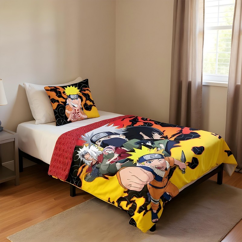 Vous voulez donner à sa chambre une jolie allure ? Nous avons un moyen de métamorphoser la chambre de votre enfant / ado en attirant le regard sur un élément inévitable de cet endroit : le lit ! Et grâce à cette parure de lit sous licence officielle Naruto, tout l’univers manga que chérit votre enfant va rayonner dans cette pièce : Naruto saura accaparer tous les regards !