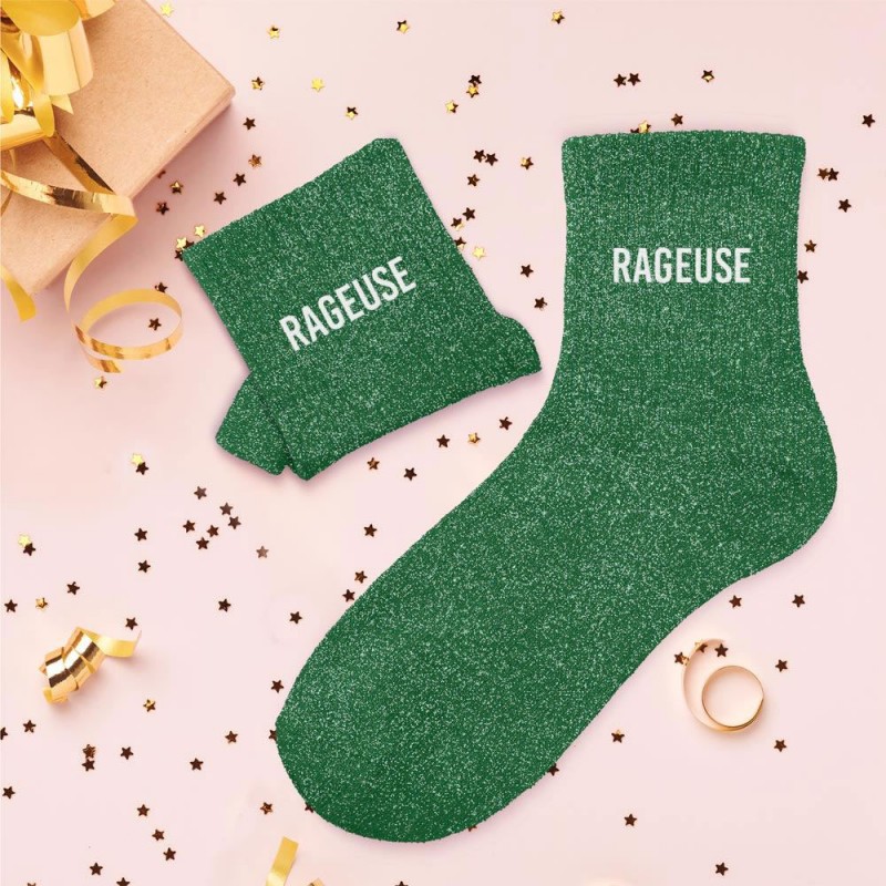 Ajoutez une touche d'originalité à vos tenues avec ces chaussettes pailletées colorées et leurs inscriptions pleines d'humour et d'attitudes. Disponibles en différents modèles au choix, elles sont parfaites pour afficher un état d'esprit décalé : "Fabuleuse", "Merveilleuse", "Fêtarde", "Emmerdeuse", "Râleuse" et bien d'autres encore ! Conçues dans une matière douce et extensible, elles s’adaptent à toutes les morphologies et garantissent un maximum de confort tout en ajoutant une touche fun et élégante à votre look. Avec un effet brillant, elles se portent aussi bien au quotidien que pour une occasion spéciale.