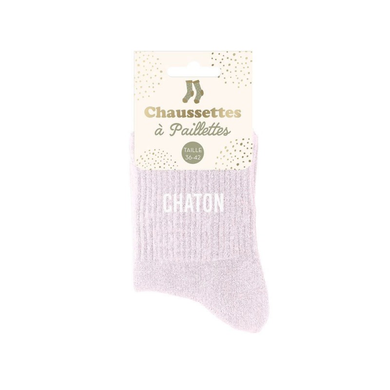 - Chaussettes paillettes colorées mot fantaisie.