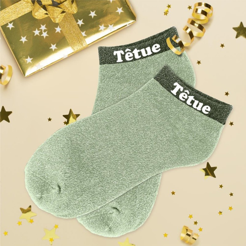 - Socquettes paillettes colorées mot fantaisie.