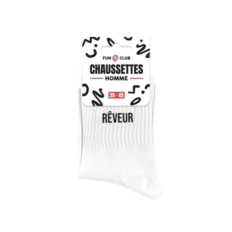 Une idée cadeau homme fun, originale et utile, pour un confort optimal.Voilà des chaussettes stylées qui parlent pour lui, sans dire un mot ! Au-delà du message, ces chaussettes fantaisie pour homme sont conçues pour être agréables à porter toute la journée. Elles prouvent qu’on peut être stylé, confortable et drôle à la fois ! Ces chaussettes blanches à message sont la preuve qu’un accessoire du quotidien peut devenir fun, expressif et stylé... Voilà un petit détail qui fait toute la différence ! Choisissez le modèle qui correspond le mieux à sa personnalité... ou celui qui le fera le plus rire !