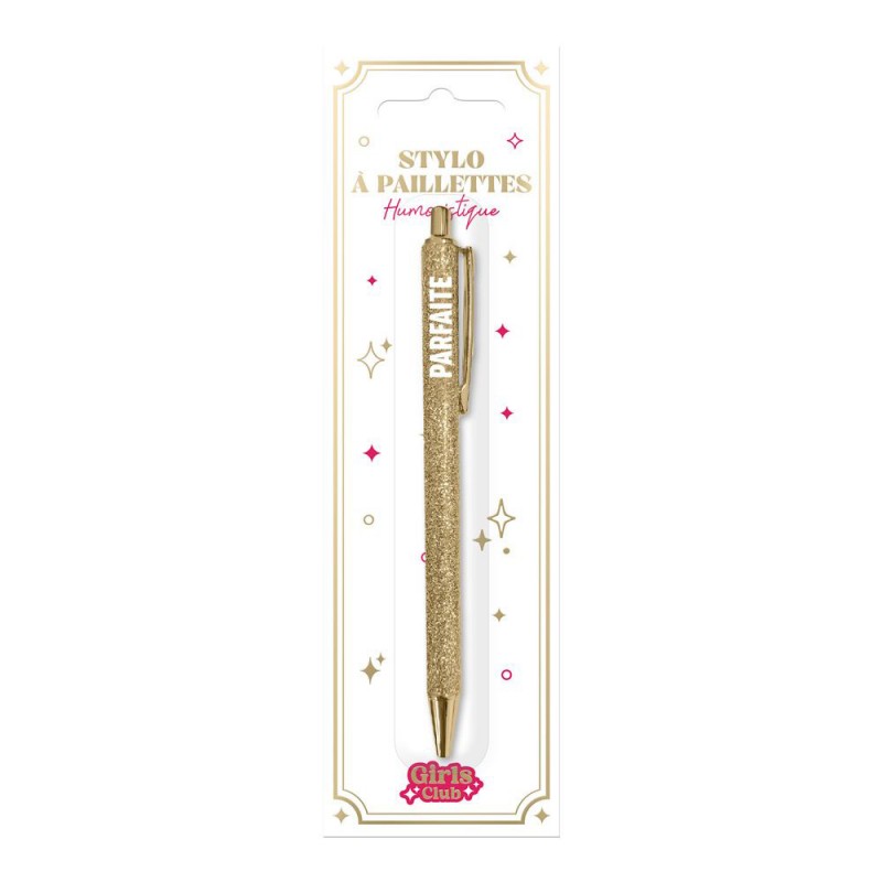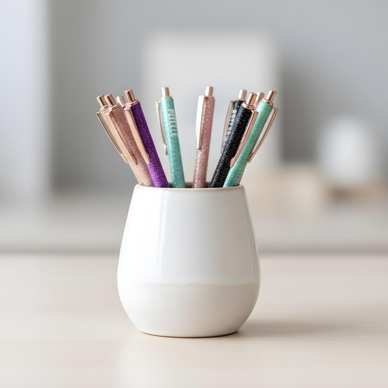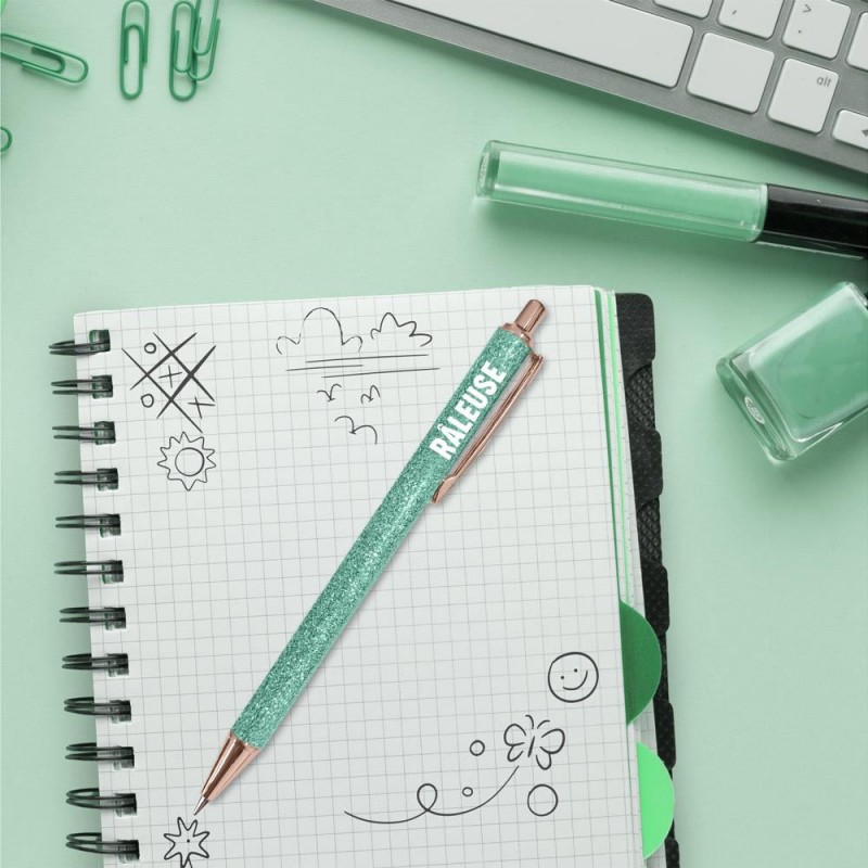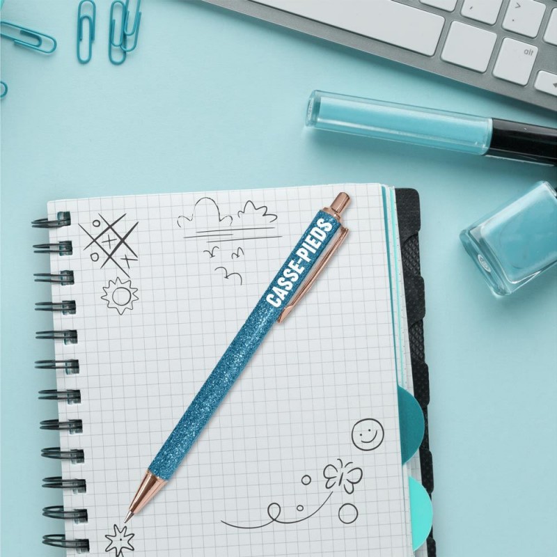 Chaque stylo fantaisie est décoré de paillettes scintillantes et d’un mot ou d’une expression pleine de personnalité : parfaite, bichette, têtue, connasse, maman chérie, casse-pied, râleuse, bad girl... et bien d'autres encore ! Ce stylo pailleté fera sourire à chaque utilisation, que ce soit pour prendre des notes au travail ou à l'école, écrire dans un carnet ou un bullet journal, griffonner une liste de courses, signer des documents avec style ou simplement décorer votre bureau...
