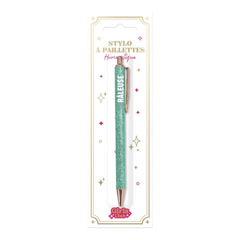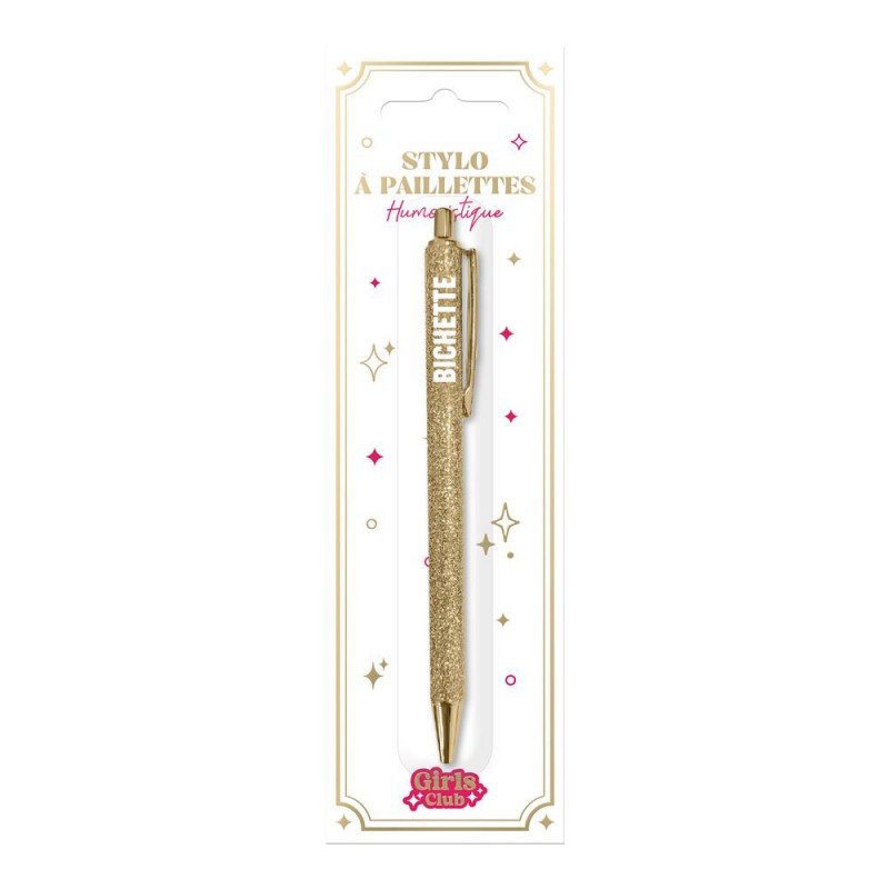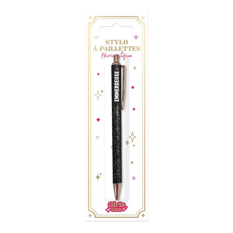 Le stylo à paillettes qui a du caractère... comme vous !Ajoutez une dose d’humour, de brillance et de personnalité à votre quotidien avec notre stylo à paillettes à message fantaisie. Bien plus qu’un simple stylo, c’est un accessoire fun, tendance et expressif, parfait pour affirmer son humeur, son caractère ou faire passer un message… sans dire un mot !