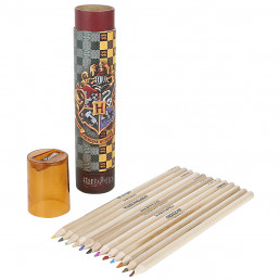 - Set Harry Potter Poudlard avec un tube avec taille-crayon intégré, douze crayons de couleur et deux feuilles de coloriage inclus.