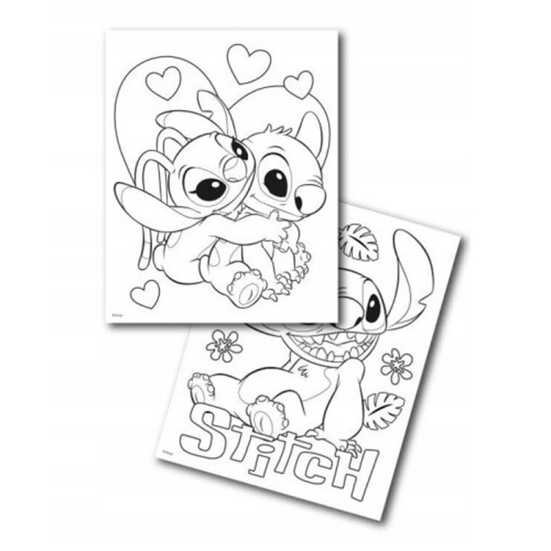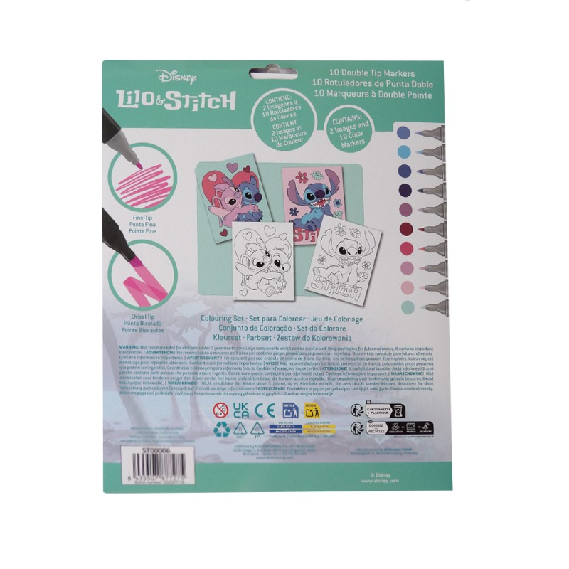 - Set de coloriage Angel & Stitch Disney avec 10 marqueurs de couleur et 2 feuilles de coloriage.