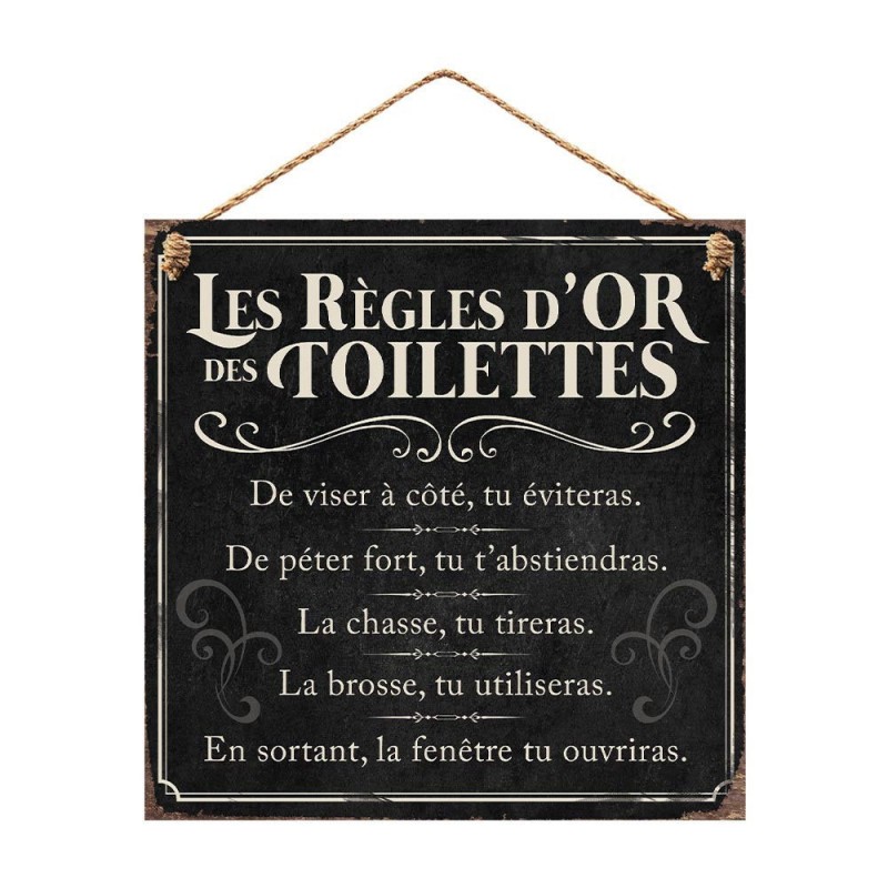 - Plaque murale métallique « Les règles d'or des toilettes ».