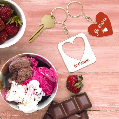 - Porte-clés duo coeurs je t'aime.