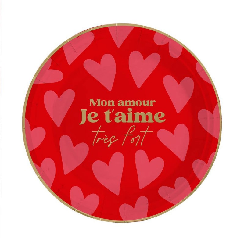 - Lot de 6 assiettes romantiques "Mon amour je t'aime très fort".