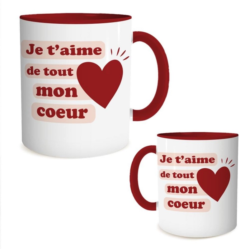 - Mug rouge « Je t'aime de tout mon coeur ».